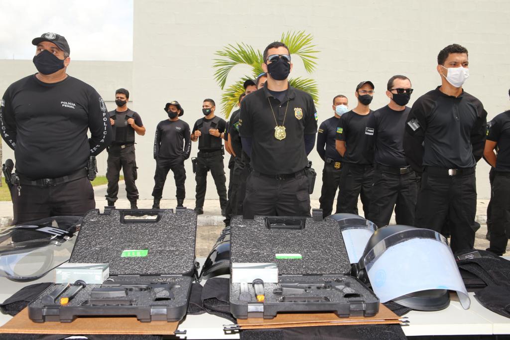 No evento, foram assinadas, ainda, carteiras funcionais, conferindo porte de arma aos servidores recém-empossados da Polícia Penal, e entregues 260 pistolas TH40 e 280 coletes balísticos, em um investimento total superior a R$ 1,14 milhão.