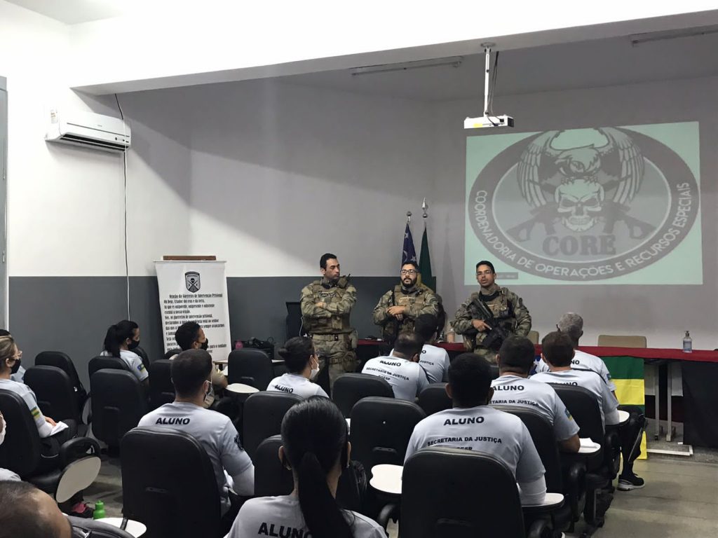 O curso de formação dos novos policiais penais de Sergipe está ocorrendo com instruções ministradas pela Coordenadoria de Operações e Recursos Especiais (Core), da Polícia Civil de Sergipe. As instruções feitas pela Core estão ocorrendo na Academia de Polícia Civil (Acadepol) e na Escola de Gestão Penitenciária (Egesp). O treinamento teve início na segunda-feira (13) e prossegue até o próximo dia 18.