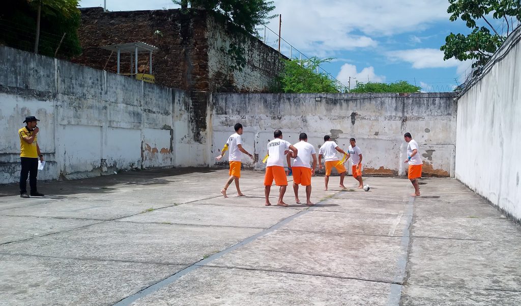 Internos participaram de atividades culturais e esportivas Entre os dias 27 de fevereiro e 03 de março foi realizada a Gincana Terapêutica Esportiva na Unidade de Custódia Psiquiátrica (UCP), em Aracaju. Durante a semana, cerca de 80 internos da unidade participaram de atividades culturais e esportivas. “A gincana tem como objetivo evitar a ociosidade entre os internos da UCP, o que pode gerar ansiedade e irritabilidade. Além disso, ela é uma forma de integração entre os internos e as equipes da unidade (saúde, educação e segurança) e, dessa forma estabelece um ambiente saudável, já que o tratamento da saúde mental vai além do uso de medicamentos”, comenta o diretor da unidade, policial penal Éden Santos. O sentimento de integração na unidade através da gincana é confirmada e elogiada pelos próprios internos, como uma interna transsexual que se disse feliz por se sentir respeitada na unidade independente da sua identidade de gênero. “A gincana foi incrível, distraiu a minha mente e eu pude me divertir com os meus colegas daqui. Eu competi em todas as modalidades com o meu time, infelizmente não conseguimos chegar a final, mas quem vencer estará de parabéns”, comentou a interna. Continuidade Logo após a final entre as duas equipes que se classificaram ao longo da semana, o diretor da unidade anunciou a continuidade do projeto que passará a ser realizado a cada dois meses na UCP. “Essa gincana funciona também como tratamento, uma vez que ela favorece o desenvolvimento motor e intelectual dos internos. Além disso, também melhora o relacionamento entre eles, os familiares e, principalmente, com a sociedade como um todo”, comentou a coordenadora pedagógica da unidade, Selma Andrade. Com o apoio a Igreja Adventista e do Lar Doce Lar, a final da Gincana Terapêutica Esportiva da UCP foi realizada na manhã da última sexta-feira, 03, e contou ainda com a realização de uma missa, distribuição de lanches, um rápido culto evangélico e, até mesmo, uma partida de futebol entre as equipes finalistas com a torcida dos demais internos, familiares e profissionais que atuam na Unidade de Custódia Psiquiátrica.