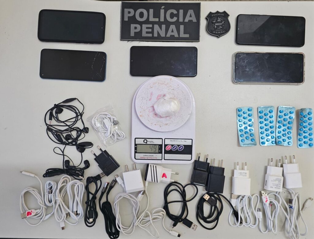 A direção explica que uma nova varredura foi realizada na madrugada deste domingo, 10, por volta das 05h, que resultou na apreensão de outro pacote, agora na parte externa da unidade prisional, contendo oito carregadores de celular, fones de ouvidos, cartelas de comprimidos e uma embalagem contendo 49 gramas de substância análoga à cocaína.