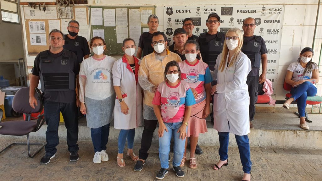 A Polícia Penal de Sergipe operacionalizou toda atividade, tanto no processo de deslocamento dos internos do pavilhão até o local de vacinação, como também durante o processo de vacinação, garantindo que a ação ocorresse em segurança para os servidores do município.