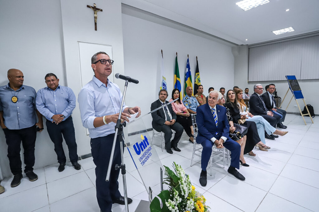 O governador Fábio Mitidieri prestigiou nesta terça-feira, 4, a cerimônia de formatura dos 98 policiais penais do curso de pós-graduação em Direitos Humanos e Execução Penal, que aconteceu no auditório da Universidade Tiradentes (Unit).