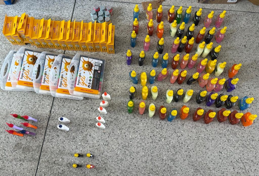 No decorrer das fiscalizações, foram identificados produtos como tintas, colas e outros itens de papelaria, com validade expirada. Após a verificação, 347 materiais foram retirados das prateleiras e descartados pelos fiscais do órgão de defesa do consumidor estadual.