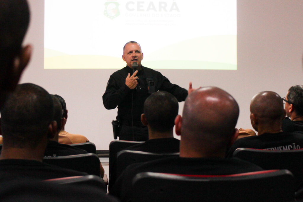 Após o encerramento da cerimônia, o secretário de Administração Penitenciária do Ceará, Mauro Albuquerque, convidado de honra, deu início à aula inaugural com a palestra ‘História da Intervenção Prisional e Procedimentos de Segurança’.