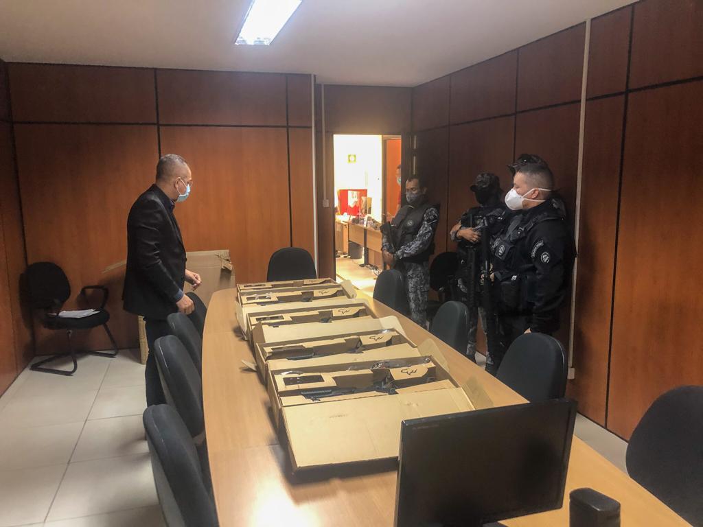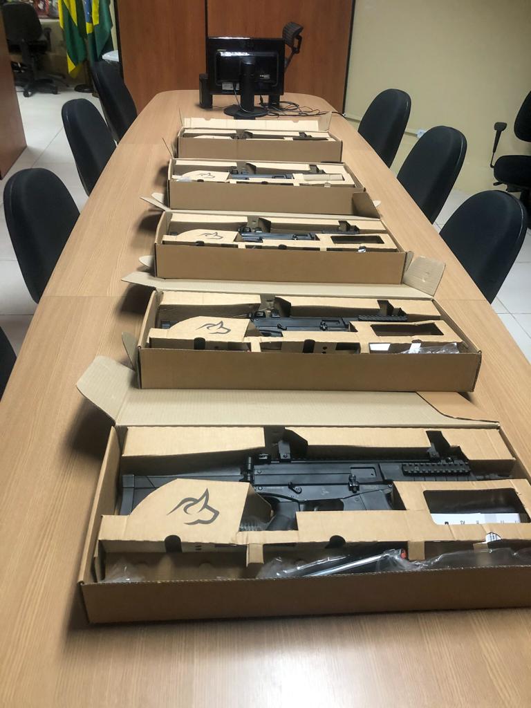 A Secretaria de Estado da Justiça, do Trabalho e de Defesa do Consumidor (Sejuc) recebeu mais um lote de armamentos nesta sexta-feira, 30. Com a proximidade da inauguração do regime semiaberto no presídio em Areia Branca, todas as unidades estão sendo equipadas com novos armamentos. Assim, reforçando a política de aquisição de armas mais adequadas à atividade, hoje foram entregues 15 carabinas CTT40, totalizando um investimento de R$82.391,85.